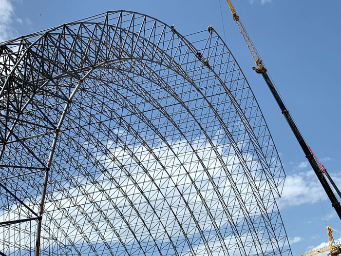(2)网架加工前应对现场尺寸进行复测,确认无误后方可进行加工、安装;网架制作、运输、安装应遵守《空间网格结构技术规程》JGJ7-2010、《钢网架合山螺栓球节点》JG/T 10-2009、《钢网架合山螺栓球节点用高强度螺栓》 GB/T 16939-2016、《合山钢结构合山工程合山施工规范》 GB50755-2012、《合山钢结构合山工程合山施工质量验收标准》 GB50205-2020。
